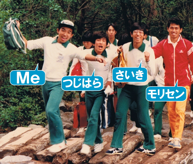 写真は、 卒業旅行(わが母校では、研修旅行という呼び名だった)の時のモノ。 裏に、「悪友 辻原・斉木そして森先etc.」と書いてある。